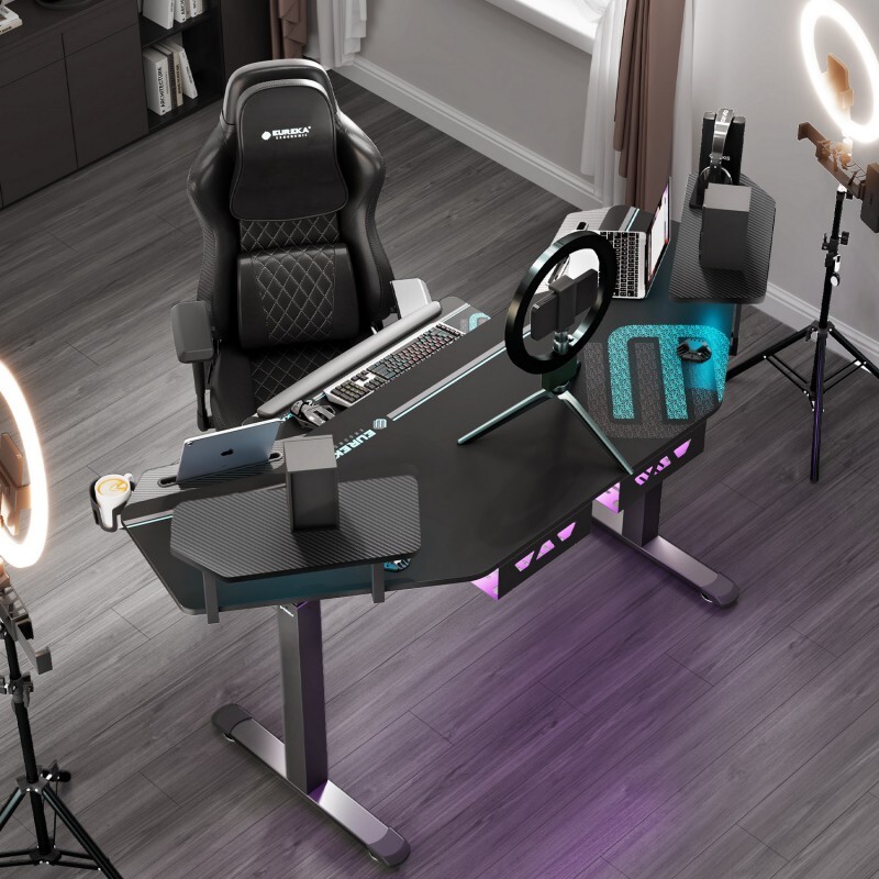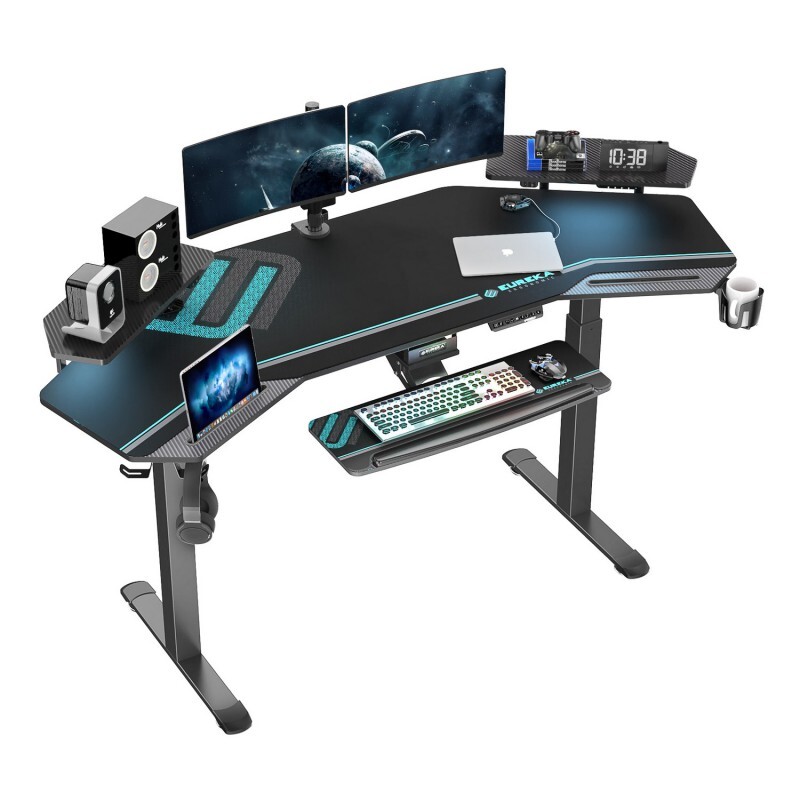 Стол для компьютера (для геймеров) с подставкой под клавиатуру и электрической регулировкой по высоте Eureka ERK-ES71-B-EU