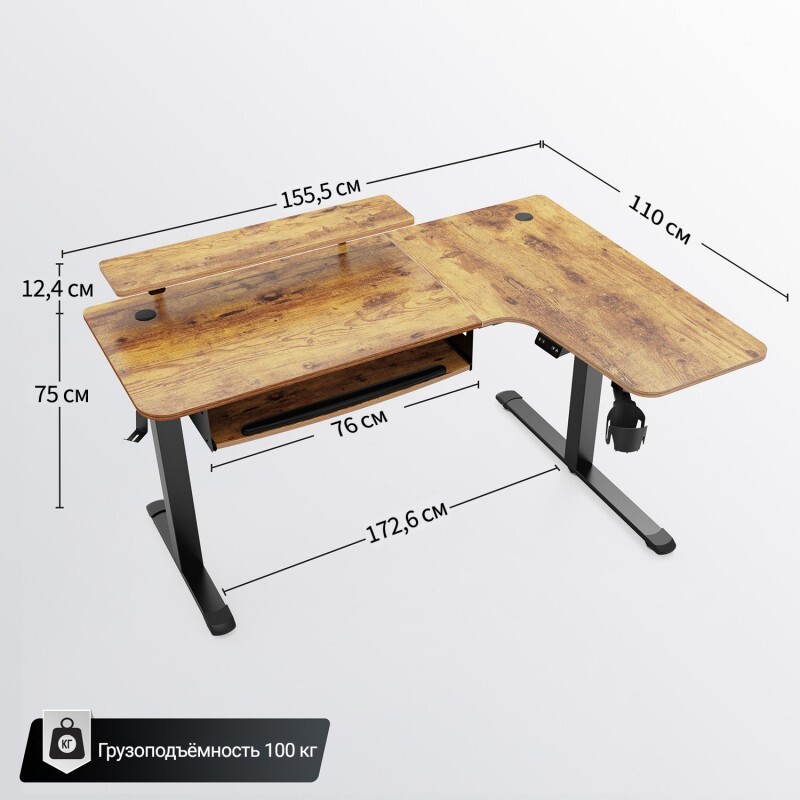 Угловой компьютерный стол Eureka L60 Gaming Desk c электрической регулировкой по высоте - идеальный выбор тех, кому необходимо расширенное пространство для работы. L60 имеет 60-дюймовую столешницу с гладким покрытием в стиле натуральной деревяной доски. На столе Eureka L60 можно с лёгкостью разместить несколько мониторов и необходимые девайсы для осуществления вашей деятельности. А такие решения по организации пространства, как надстройка для монитора и подставка под клавиатуру увеличат рабочее пространство минимум на 25%ю Стол регулируется по высоте и не вибрирует при подъёме/опускании, благодаря плавному пуску/остановке. Улучшенный многофункциональный контроллер с передней стороны стола имеет 2 USB порта и может хранить 4 предварительно запрограммированных высоты. А интеллектуальный датчик предотвращения столкновений Eureka был специально разработан для обеспечения безопасности объектов вокруг вашего стола при изменении высоты. Вам не надо волноваться о том, что стол столкнется с принтером или офисным шкафом, датчик защиты от столкновений не позволит столу ударить предметы вокруг стола. А благодаря специальной системе управления кабелями, на вашем столе никогда не будет запутанных проводов.