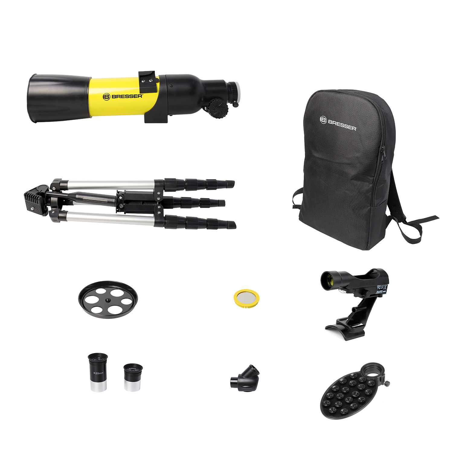 Tелескоп-рефрактер BRESSER 70/400 с апертурой 70 мм и фокусным расстоянием 400 мм способен показать вам множество впечатляющих небесных объектов. Благодаря 2 различным окулярам и дополнительной линзе Барлоу увеличение телескопа достигает 120 крат. В комплект также входит отличный аксессуар, который познакомит вас с миром астрофотографии: с помощью адаптера для смартфона вы можете делать потрясающие фотографии Луны, планет и других небесных объектов. Область применения этого телескопа - наземное наблюдение, планетарные наблюдения.