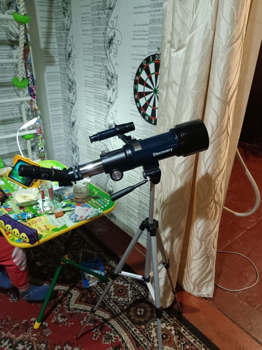 Комплектация – одна из сильных сторон модели. С телескопом поставляется множество дополнительных аксессуаров: 3-кратная линза Барлоу, сменные окуляры, оптический искатель, адаптер для съемки фото с помощью смартфона. Вы сможете подбирать подходящее увеличение для изучения разных астрономических объектов, сохраняя живописные космические виды в формате фото. Надежная металлическая тренога регулируется по высоте. На нее устанавливается азимутальная монтировка, с помощью которой труба телескопа легко перемещается по азимуту и вертикали.