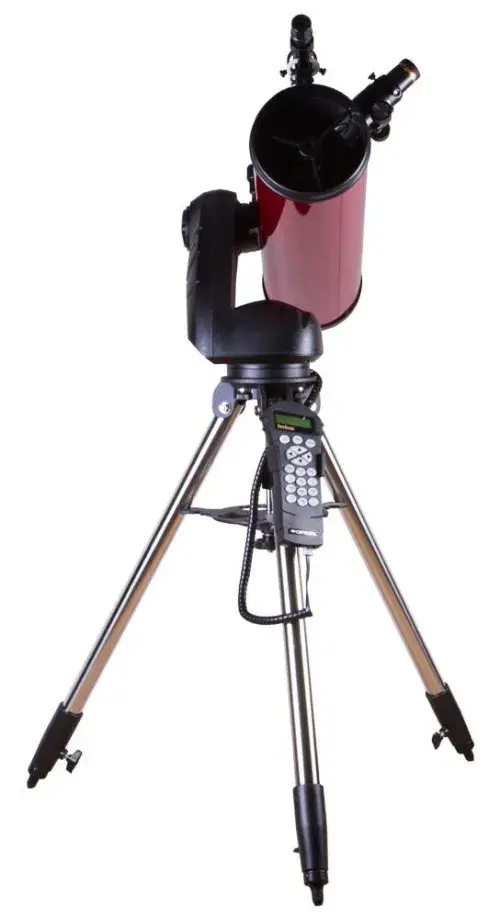На телескопе установлено главное зеркало параболической формы, поэтому на максимальном увеличении не наблюдаются сферические искажения. Четкость и контрастность картинки приятно порадуют даже требовательных пользователей. Монтировка снабжена системой автонаведения, в память которой загружены 42 000 координат астрономических объектов – планет, галактик, туманностей и многих других. Телескоп сам умеет находить их на небосклоне и следить за ними во время наблюдений. Возможно и управление в ручном режиме. Причем технология свободного наведения Freedom Find не позволит исчезнуть первичным настройкам позиционирования – повторную калибровку проводить не придется.