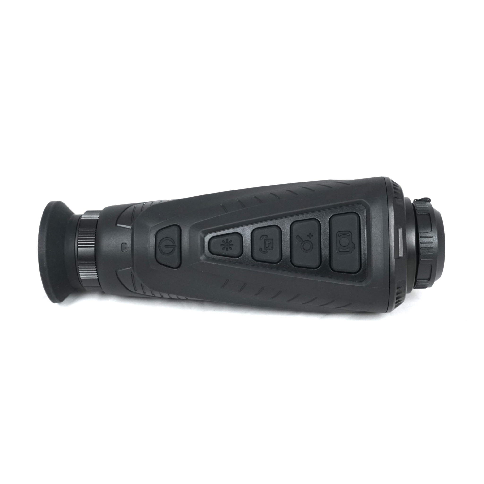 Корпус тепловизора изготовлен из устойчивых к механическим воздействиям полиамидных материалов, дополненных алюминиевыми элементами для дополнительной прочности. Прибор гарантировано справится с падениями и случайными ударами. Защита IP66 подтверждает его способность работать при повышенной влажности. Эргономичные прорезиненные части улучшают удержание монокуляра даже в полностью влажной руке. В нижней части корпуса расположен адаптер для штатива с резьбой ¼ дюйма.