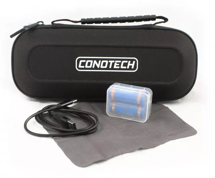 Двойной источник питания. Благодаря двум аккумуляторным батареям — встроенной на 3500 мАч и сменной 18650 на 2000 мАч, — тепловизор Conotech Aquila может проработать непрерывно и без подзарядки 10 часов. Сначала питание идёт от внешней батареи, затем автоматически переключается на внутреннюю. Это позволяет менять съёмную батарею без выключения прибора и существенно увеличивает время автономной работы. Конструкция прибора позволяет обойтись без специальных зарядных устройств: внутренний аккумулятор заряжается при прямом подключении устройства к электросети или Power Bank, а для зарядки батареи 18500 подходит съёмная часть батарейного отсека.