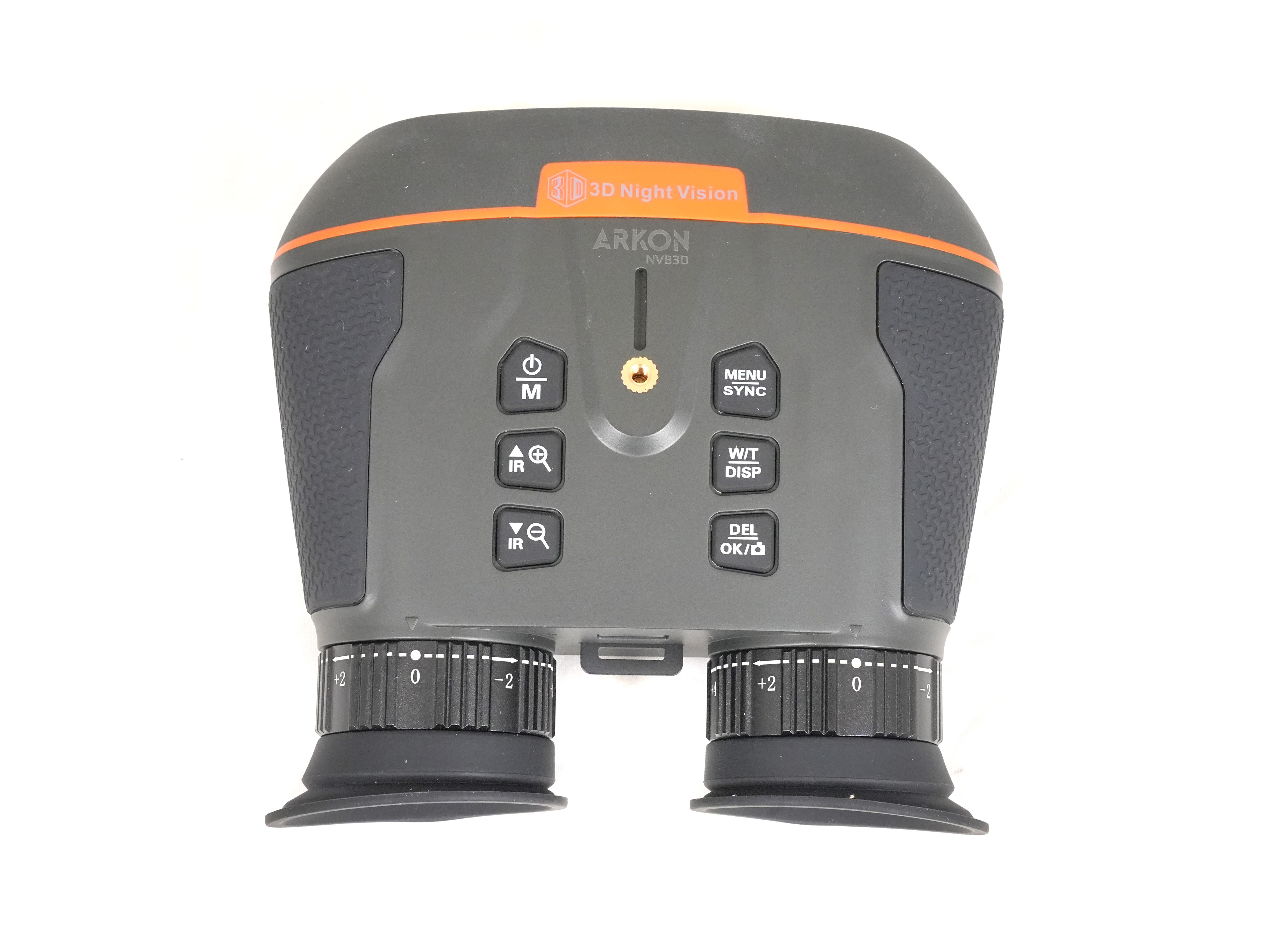 Arkon Lite NVB3D имеет размеры 118х125х51 мм и весит 300 г. Несмотря на наличие двух объективов и дисплеев, он остается компактным и удобным в эксплуатации. Органы управления расположены на верхней панели и включают кнопки меню, зума, переключения режимов и синхронизации. Конструкция рассчитана на эксплуатацию в диапазоне температур от -20°C до +50°C.