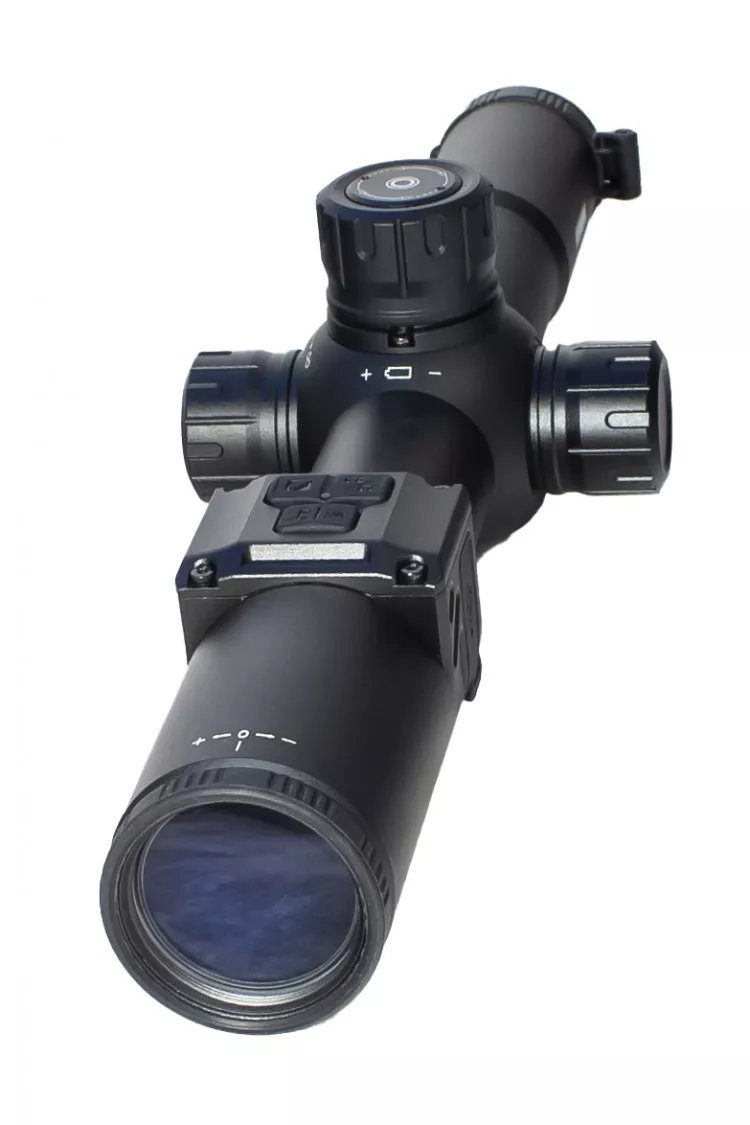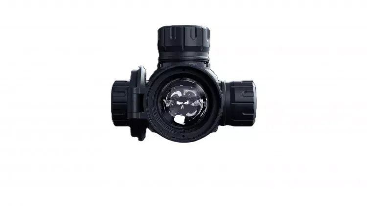 Форм-фактор — как у дневного прицела с компактным 30-мм корпусом и тремя барабанами: верхний — энкодер, левый — ручка фокусировки объектива, правый — батарейный отсек под элемент питания 18650. Понравится тем, кто предпочитает классику и хочет аналогичный дизайн для ночной охоты — чтобы легко менять прицелы и не менять крепления.