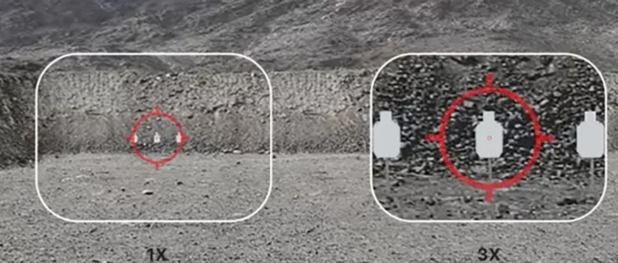 На линзы объектива нанесено многослойное просветляющее покрытие FMC, обеспечивающие высокий коэффициент светопропускания. Оптическое увеличение составляет 3х. Вынос выходного зрачка равен 75,1 мм, что является безопасным для использования с оружием крупных калибров. Диаметр выходного зрачка 6 мм комфортен для зрения. Для точной настройки изображения под индивидуальный особенности зрения предусмотрена диоптрийная корректировка. Выровнять положение прицельной марки коллиматора относительно центра поля зрения увеличителя Arkon Matrix 3х18 можно при помощи специальных механизмов под шлицевую отвертку.