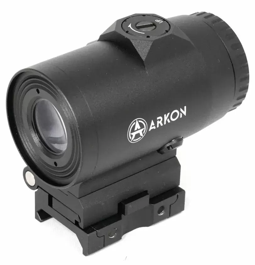 Arkon Matrix 3х18 – компактный увеличитель от российского бренда Arkon Technologies. Прибор предназначен для совместного использования с коллиматорными прицелами. Трехкратное увеличение обеспечивает комфортное прицеливание не только на коротких, но и на средних дистанциях. Просветленная оптика с широким углом обзора позволяет вести стрельбу при слабом освещении. Увеличитель поставляется с креплением на планки Wеаvеr, а простой откидной механизм с кнопочным фиксатором обеспечивает высокую скорость установки в рабочее положение. Цельнофрезерованный корпус увеличителя Arkon Matrix 3х18 герметичен и с уверенностью держит отдачу любого гражданского оружия.