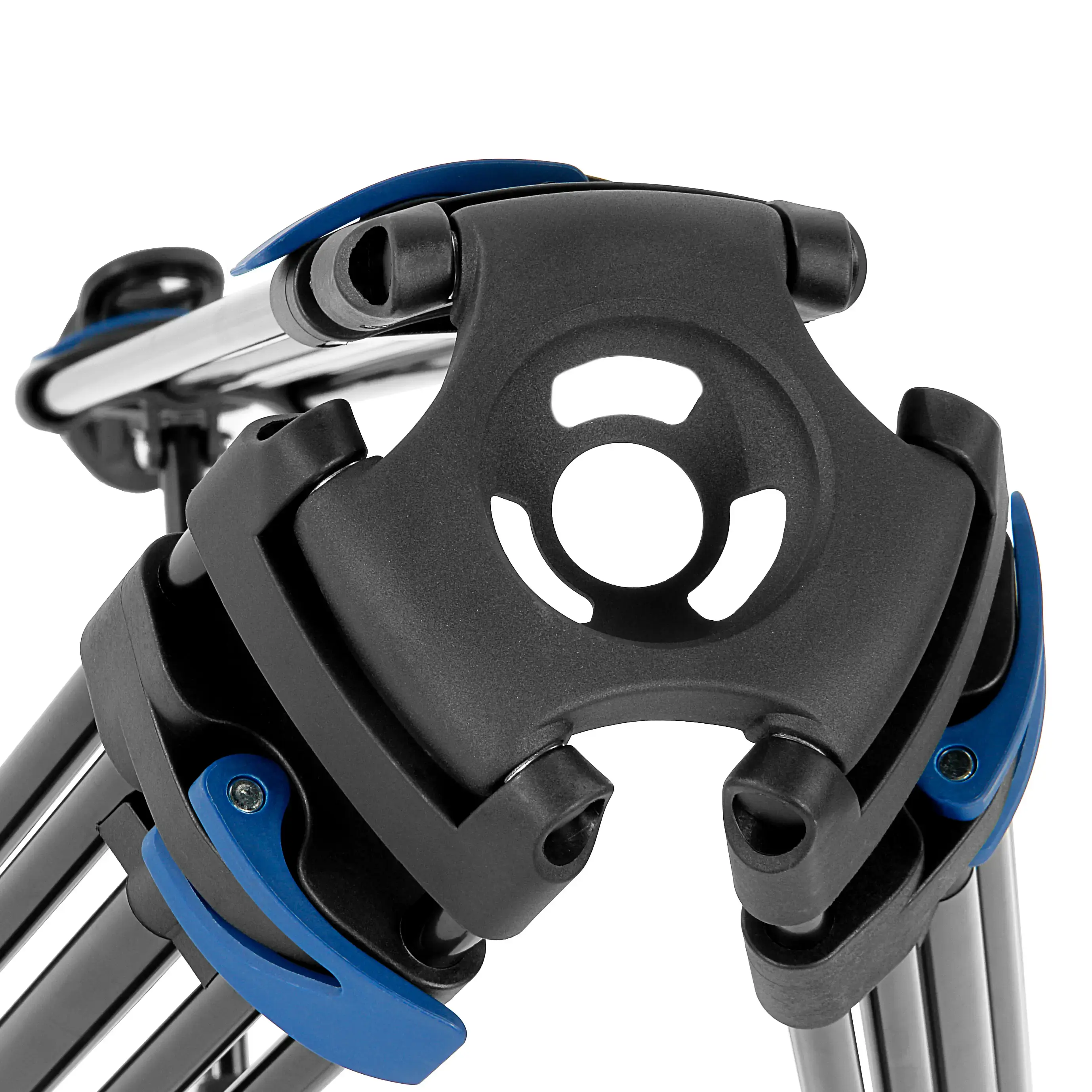 2D-жидкостная видеоголовка штатива вращается вокруг своей оси на 360 и наклоняться в пределах от +90 до -75 для проведения плавного горизонтального и вертикального панорамирования. Головка изготавливается из легкого и прочного алюминиево-магниевого сплава, оборудована быстросъемной площадкой, съемной рукояткой и пузырьковым уровнем. На штативной головке также предусмотрено резьбовое отверстие 3/8" для установки дополнительного оборудования или обвеса: осветителя, микрофона, монитора.